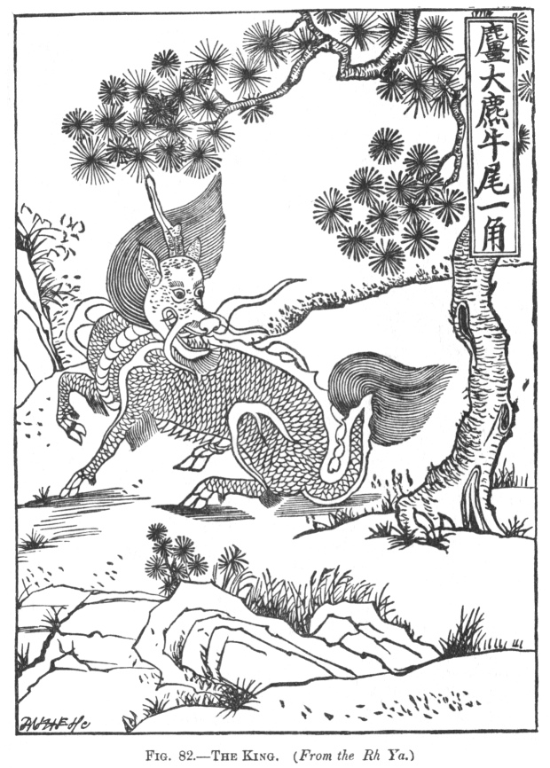 En el "Clásico de los Ritos" (chino tradicional: 禮記; chino simplificado: 礼记; pinyin: Lǐjì) y otros libros antiguos aparecía sólo cuando había un gobernante sabio o virtuoso. Se consideraba que podía caminar sobre el agua y que tenía una perfecta buena voluntad, amabilidad y benevolencia para todas las criaturas vivientes. El cuerno se encogió y se volvió suave y carnoso por lo que no lo usaba para dañar a nadie. Los budistas lo representaron como portador del civilizador Libro de la Ley y lo veneraron. Nunca comía lo contrario a lo correcto, lo que significa que rechazaría la carroña o lo que otros animales habían dejado. Todos aceptaron que se coronaba de rectitud y a menudo se colocaban en la cámara nupcial la imagen de que lo montaba la diosa de la fecundidad que sostenía a un niño en sus brazos.